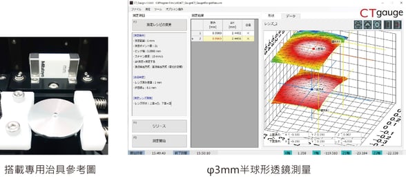 如顯微鏡用的小口徑鏡片, 對中心厚的誤差要求是更加嚴格。本裝置使用專用治具可以測量。