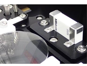 レンズの保持機構はデルリン素材のV型受けで任意径の保持が可能です。